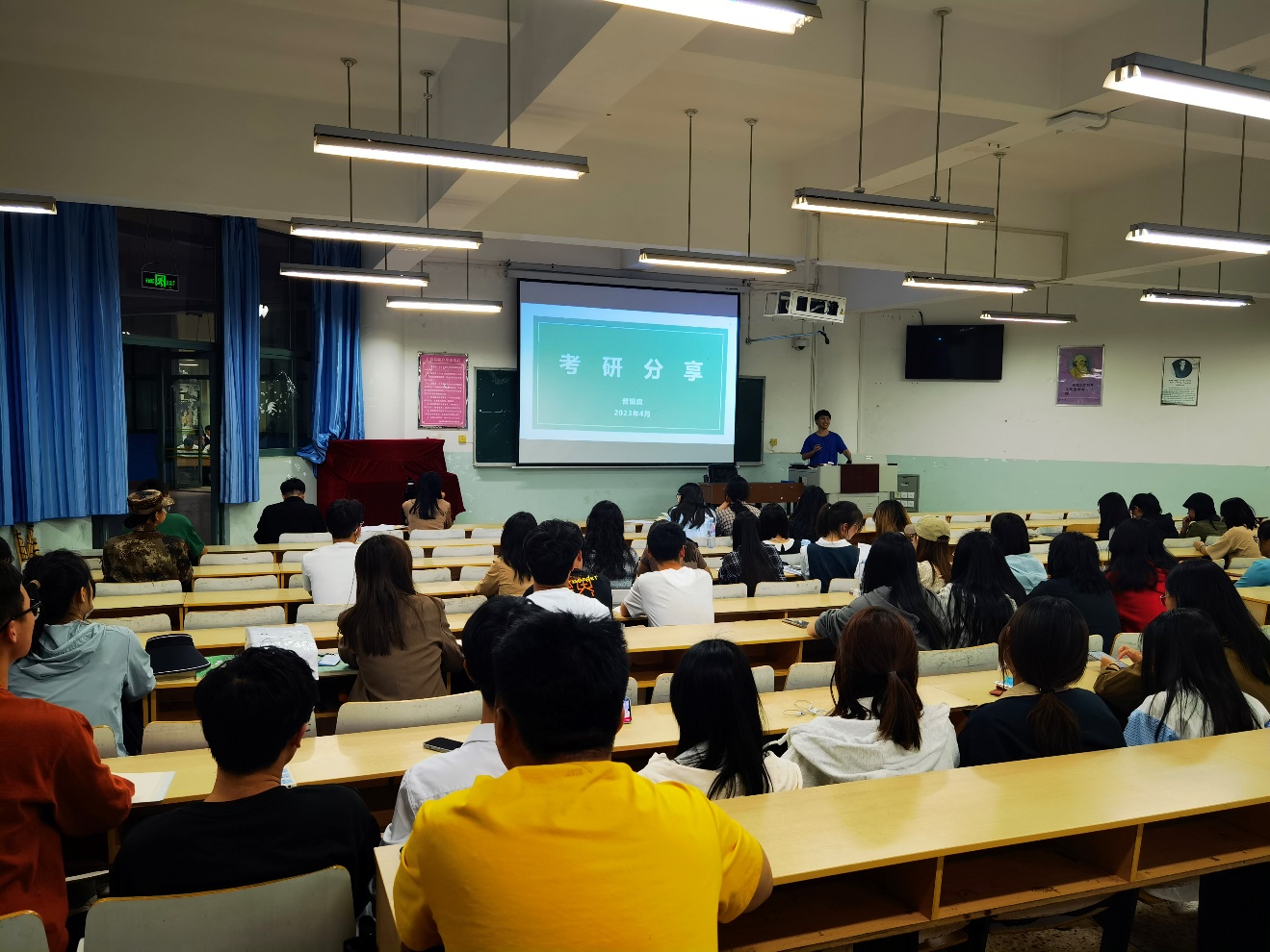分享会上,成功考入西南大学的普锐良学长从“考研考什么”、“专硕和学硕的选择”、“考试科目及题型”、“复习备考建议”四个方面结合自己的亲身实践由浅入深的分享了考研经验。成功考入云南大学的冯武学长为大家分享了自命题考研的注意事项以及考研信息的搜集,鼓励同学们踏实学习,坚持到底。考入中国农业大学的黄治豪学长则为大家分享了考研目标的制定,建议学弟学妹们能适当提高目标,只有较高的目标才能激发最大的潜能,放出最绚丽的光彩。