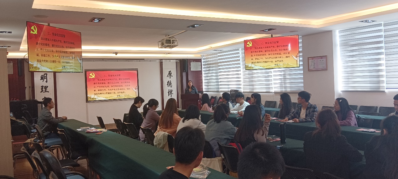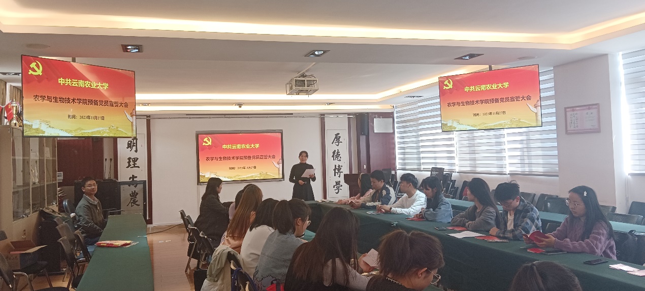 根据发展党员有关工作要求,卡通a片 于2023年11月27日在尚农楼304会议室举行预备党员的入党宣誓仪式。参加人员有学院党委组织委员寸湘琴、党政办公室主任董玉梅、学生第一党支部书记周锋及新接收的预备党员等20多人。