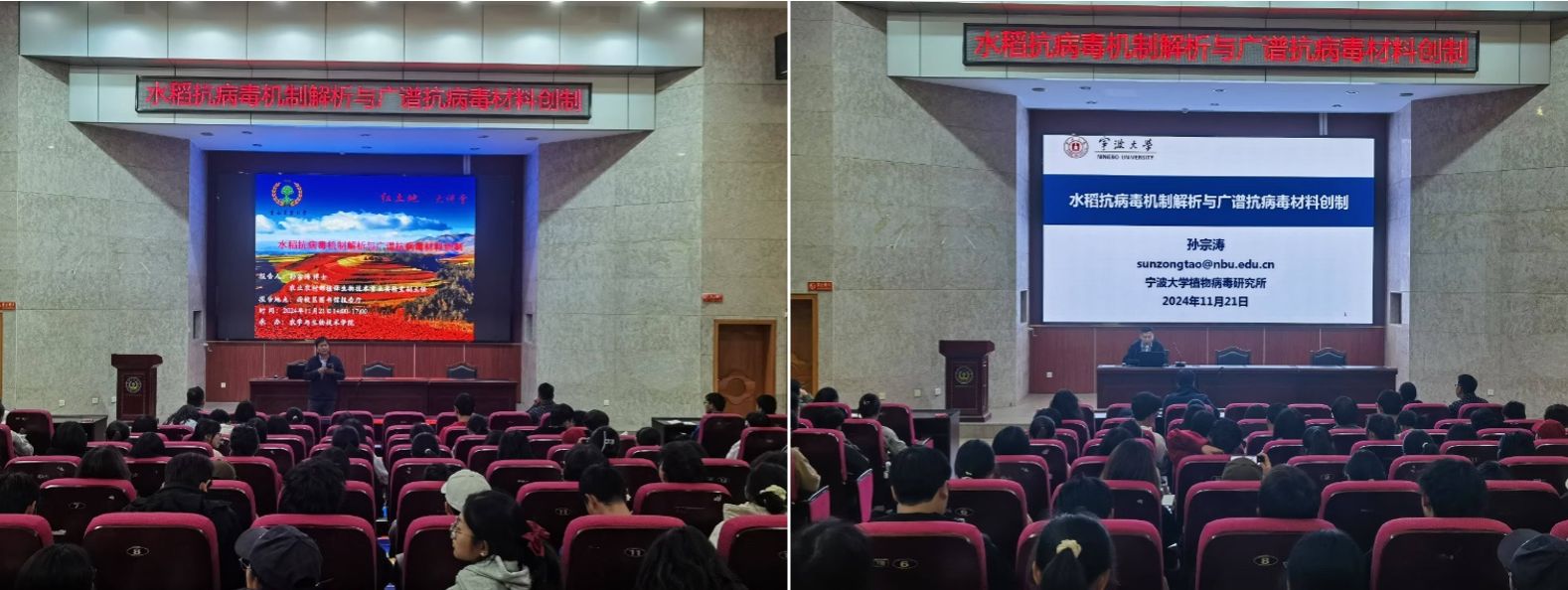 11月21日,农业农村部植保生物技术重点实验室副主任、农业农村部大豆“症青”防控专家组成员、国家自然科学优秀青年基金获得者、浙江省高层次领军人才孙宗涛研究员做客“红土地”大讲堂,为我校师生带来“水稻抗病毒机制解析与广谱抗病毒材料创制”的主题讲座,相关学科师生200余人到场聆听。讲座由卡通a片 副院长文建成教授主持。