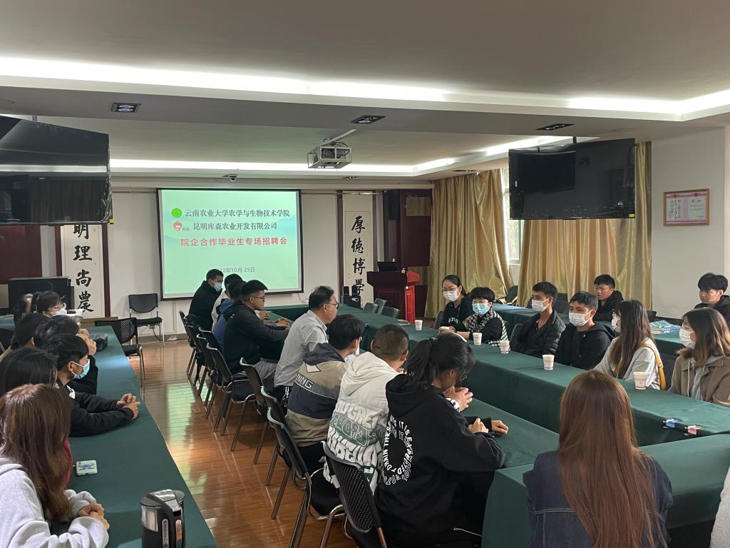 合作企业昆明库森农业开发有限公司进行“院企合作毕业生专场招聘会”,会议由学院副书记安曈昕老师主持。会上安老师与昆明库森农业开发有限公司负责人赵朝琼进行了详细会谈,逐一了解企业的用工需求、招聘要求、及提供的工资待遇等方面问题。同时还有卡通a片
