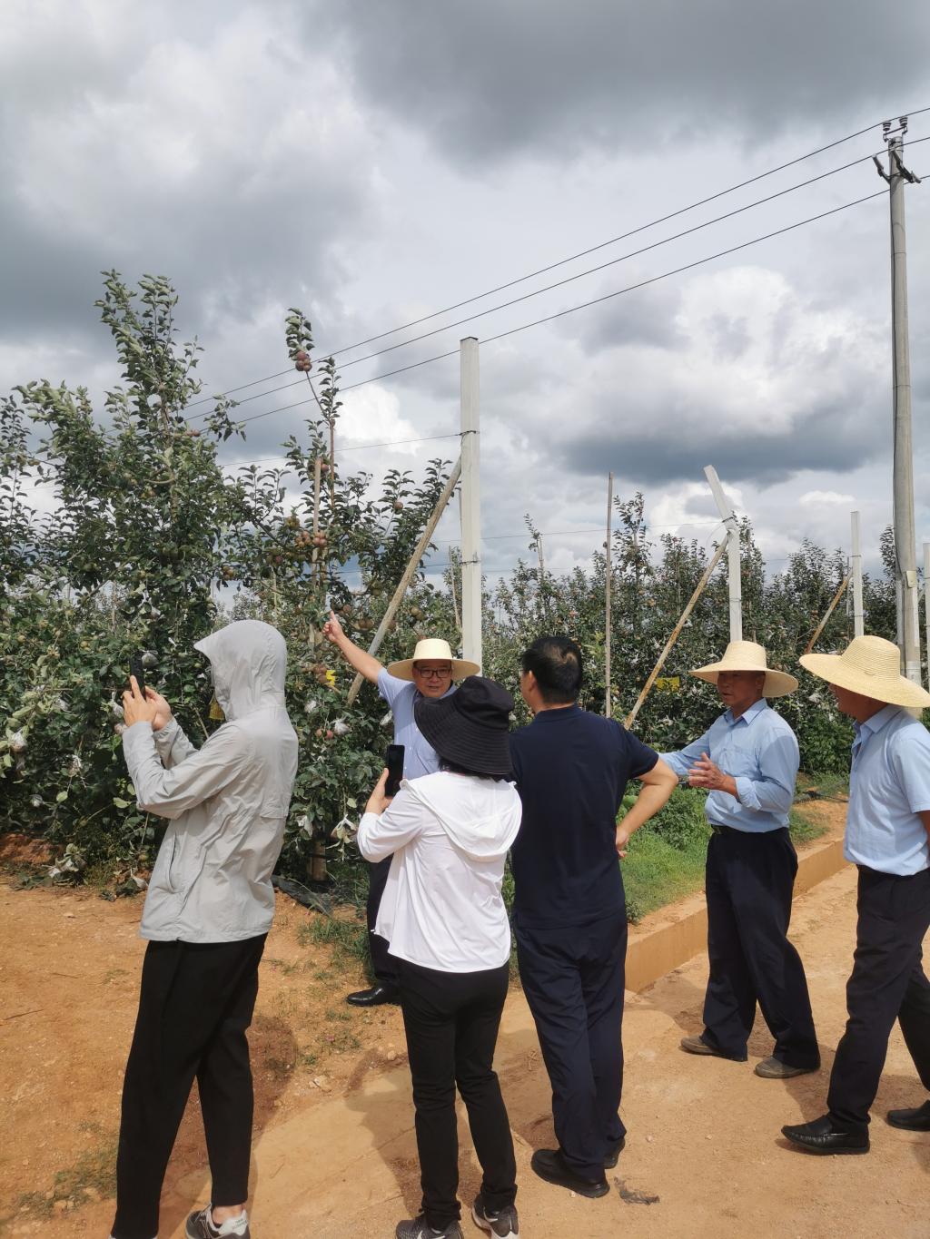 会后,学院一行前往公司基地进行实地走访交流,对基地建设、果树管理等方面的问题与企业做了实地交流指导。