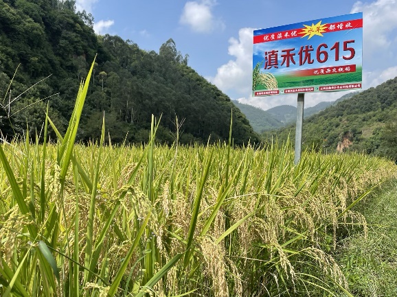 新品种“滇禾优615”, 2017年通过云南省审定(滇审稻2017017),2022年通过国家审定(国审稻20220301),2019年荣获全国优质稻食味品鉴金奖,多次入选省水稻主导品种。在长江上游粳稻区作一季中稻种植,全生育期177.0天,株高107.0厘米,结实率85.5%,千粒重23.8克,糙米率 83.5%,整精米69.1%,透明度1级,碱消值7.0 级,胶稠度66毫米,直链淀粉含量16.7%。区域试验平均亩产730.8 千克,比对照增产7.5%;生产试验平均亩产677.3千克,比对照增产10.7%。