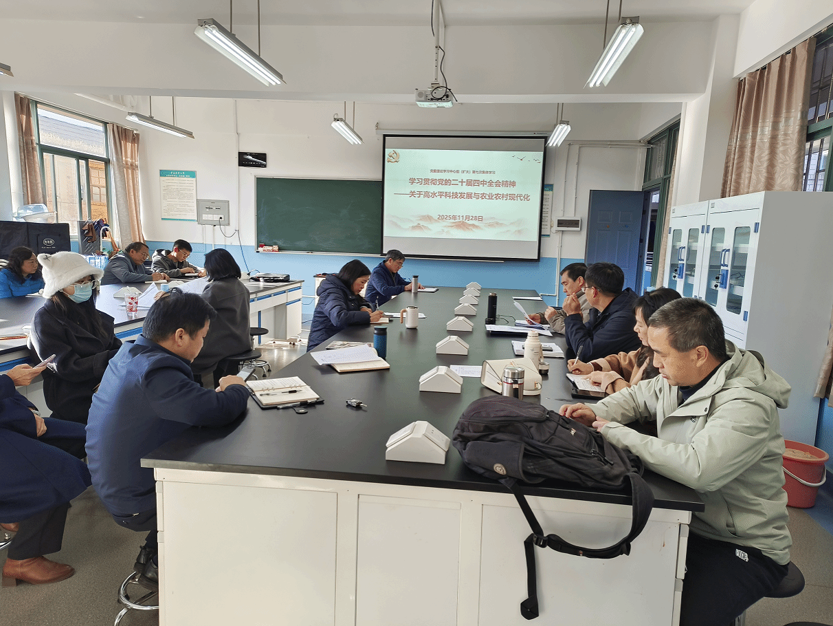党委理论学习中心组(扩大)以“学习贯彻党的二十届四中全会精神——关于高水平科技发展与农业农村现代化”为主题,组织开展2025年第七次集体学习。会议由学院党委书记李富生主持,学院党委委员、领导班子成员、党支部书记及科室负责人参加学习。