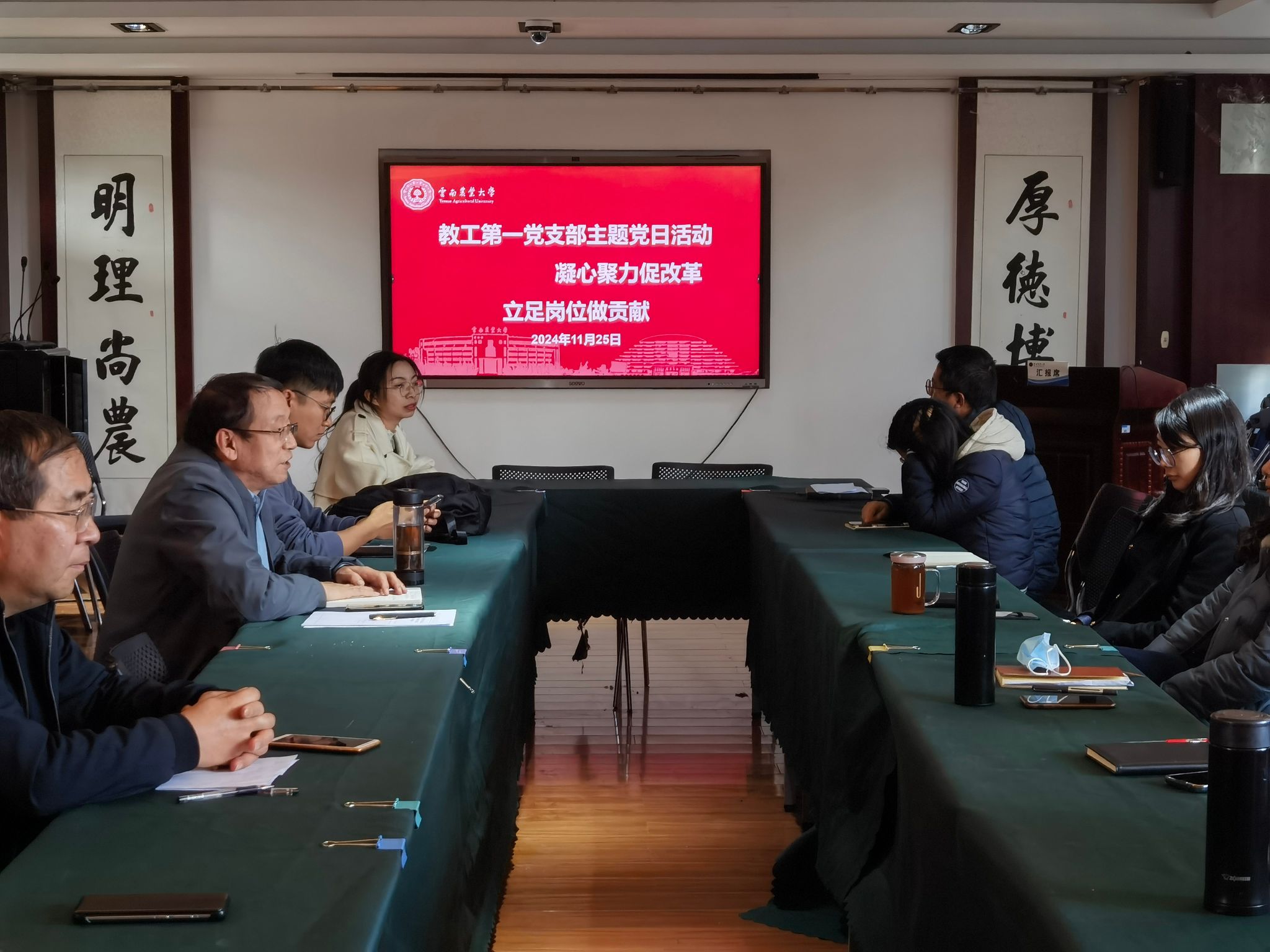 2024年11月25日,卡通a片 教工第一党支部主题党日活动在尚农楼304室举行,本次会议以“凝心聚力促改革,立足岗位做贡献”为主题,聚焦党的二十届三中全会精神以及学校发展战略,全体党员齐聚一堂,表达了为促进高质量发展贡献力量的决心与方向。