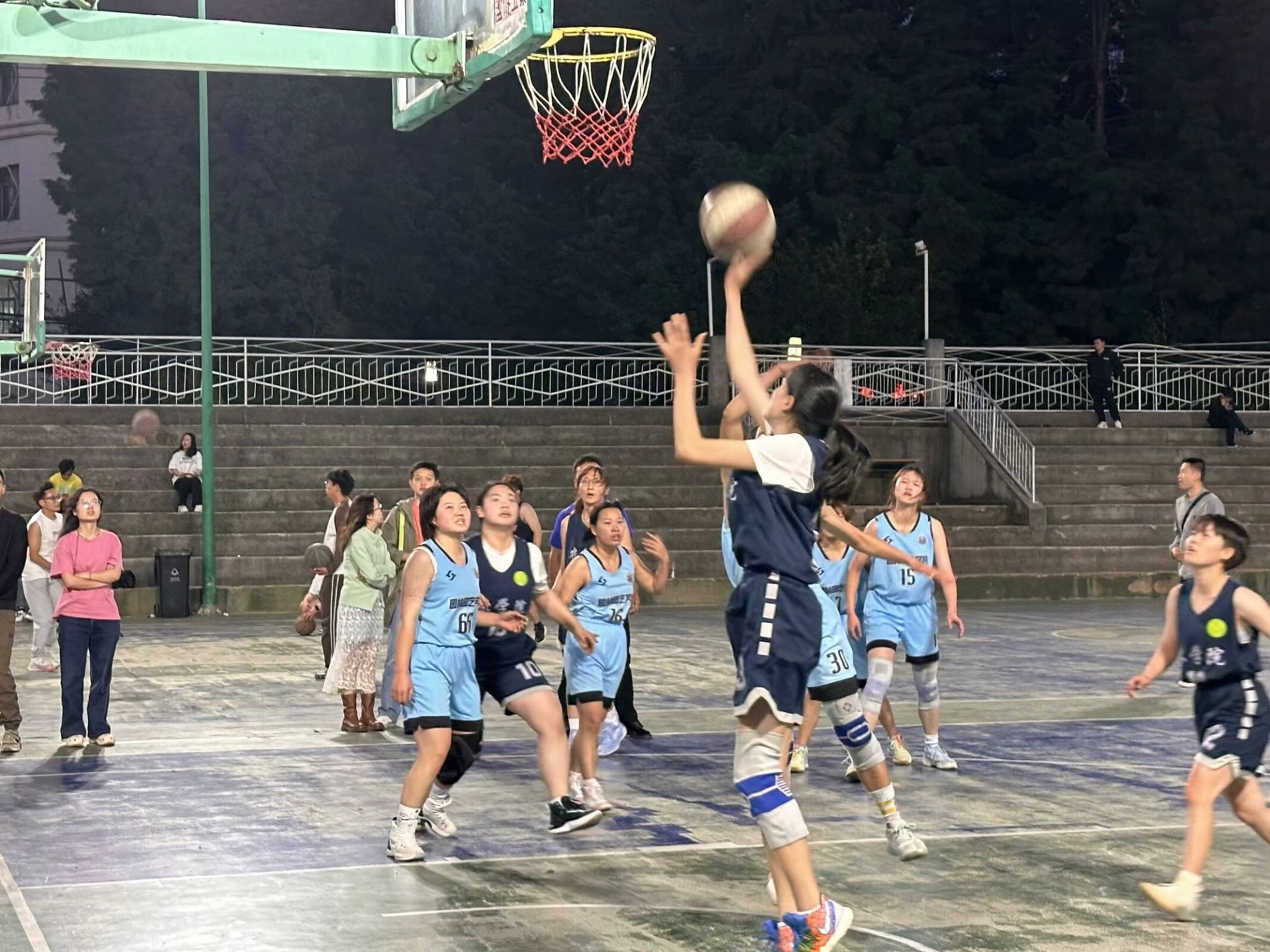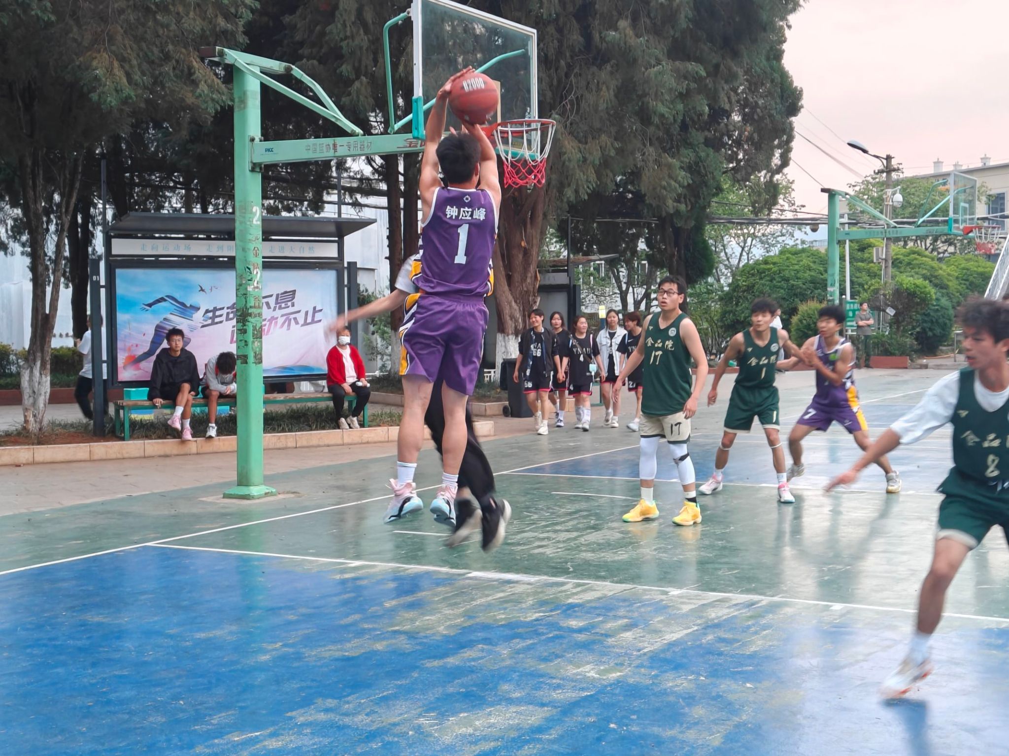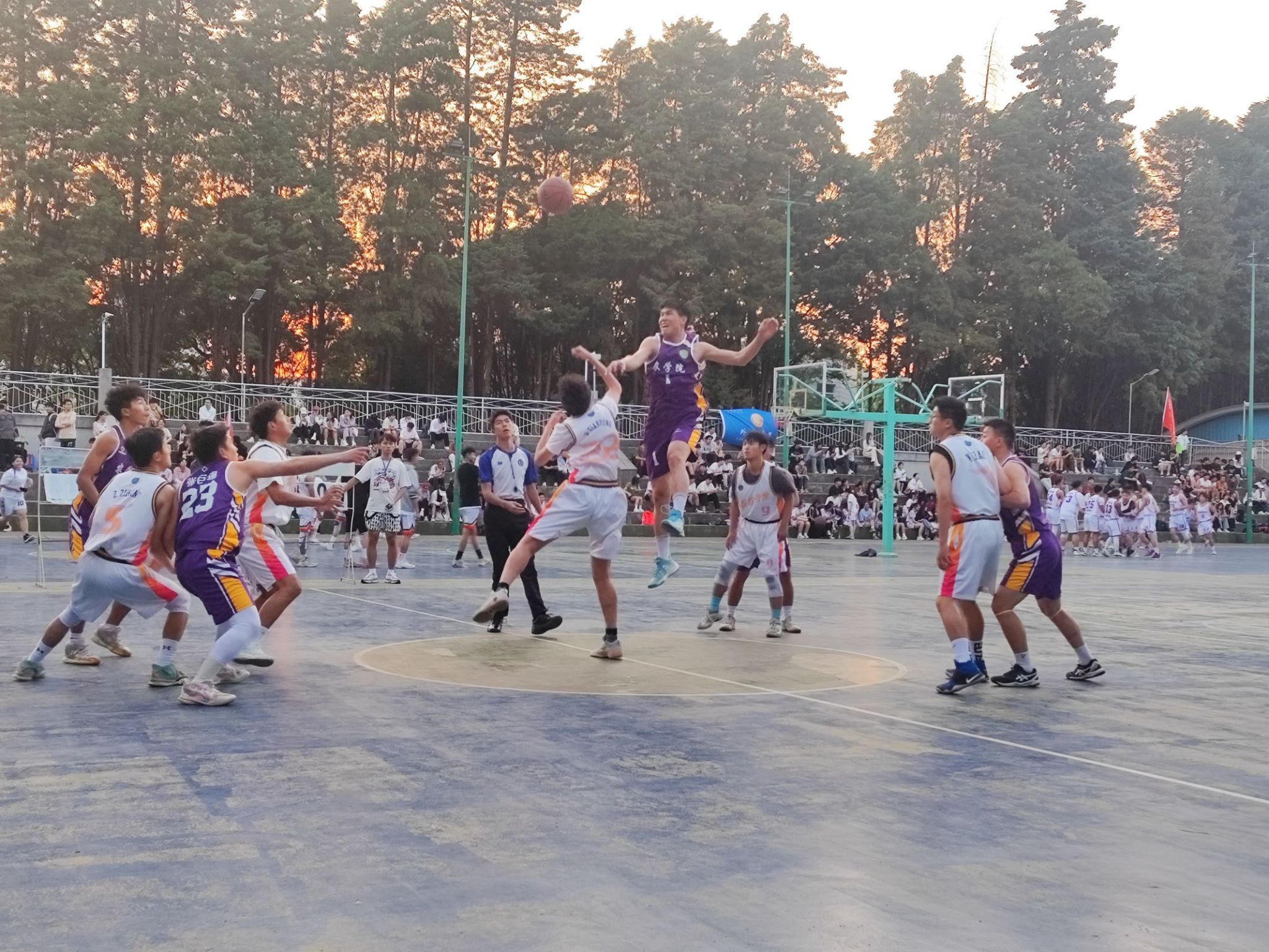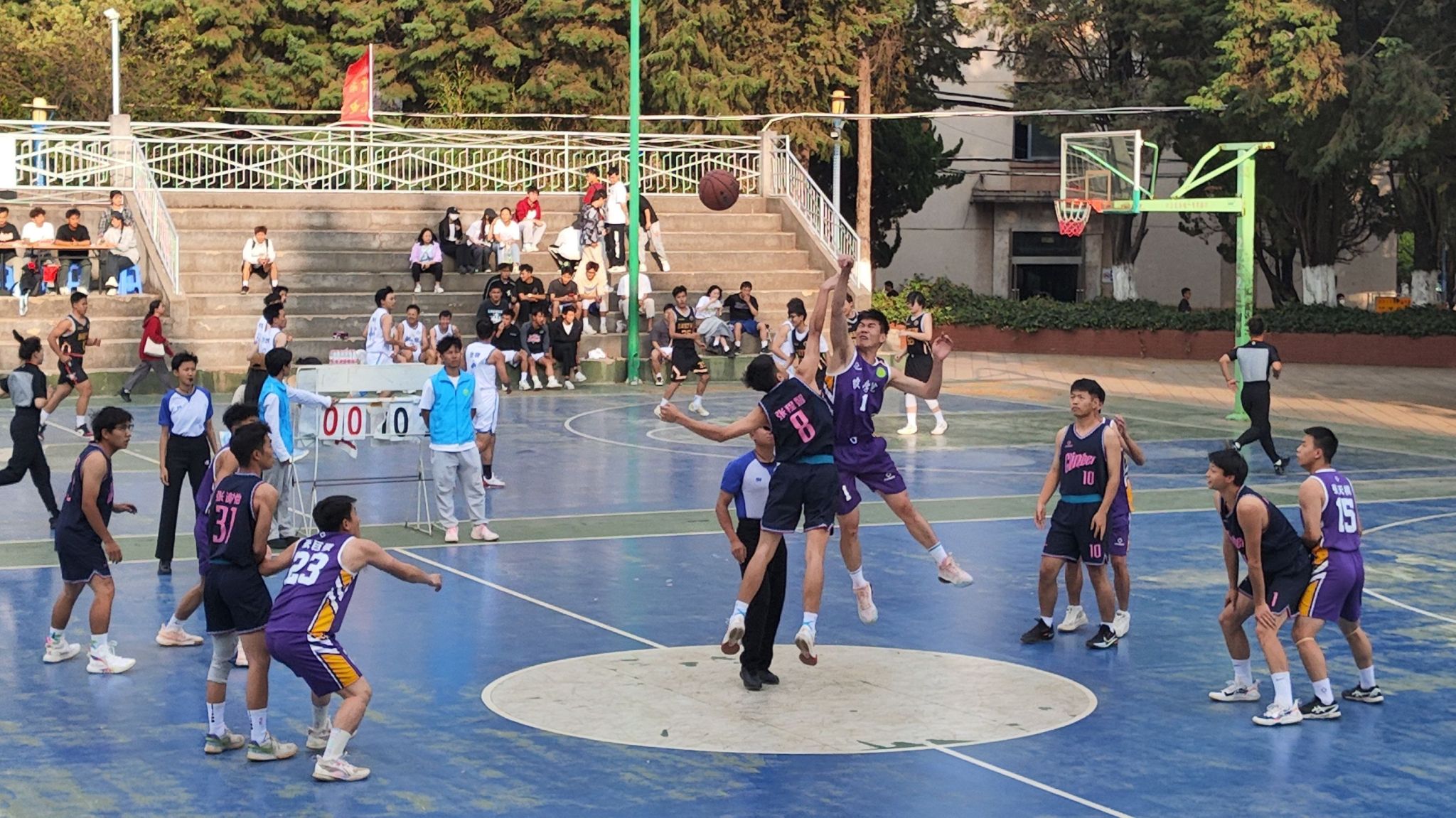 运动员们在赛场上,展现了极高的竞技水平和团队合作精神。扣篮、远投、精准传球等一系列高水平动作频繁出现,引来观众的阵阵喝彩与鼓掌。场内外的激情与活力交织在了一起!
