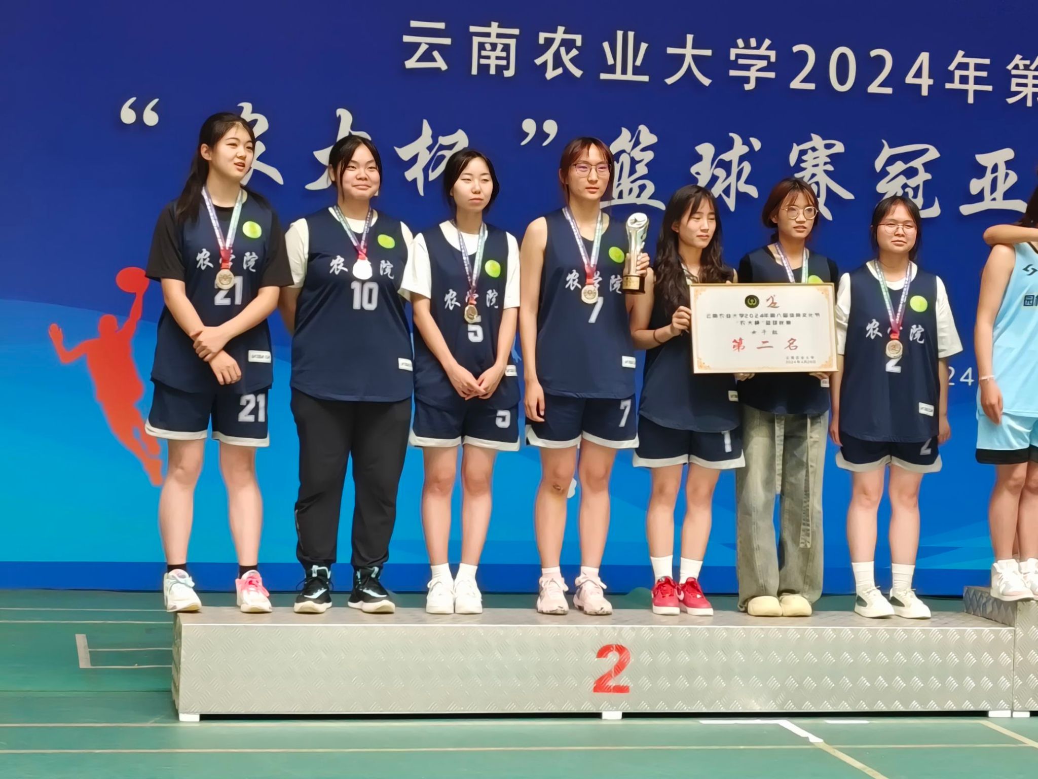 推选出男、女各一支参赛队伍,参加2024年校级“农大杯”篮球比赛,取得了令人骄傲的成绩。女队勇夺第二名,男队夺得第五名的佳绩,展示了卡通a片